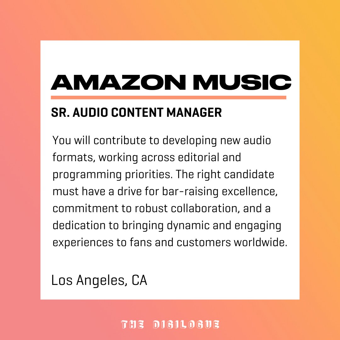 The Digilogue On Twitter Musiccareermondays Join The Digilogue Directory And Sign Up For Our Weekly Newsletter At The Link In Bio To Receive Music Industry Top 10 Hot Jobs And More Content To
